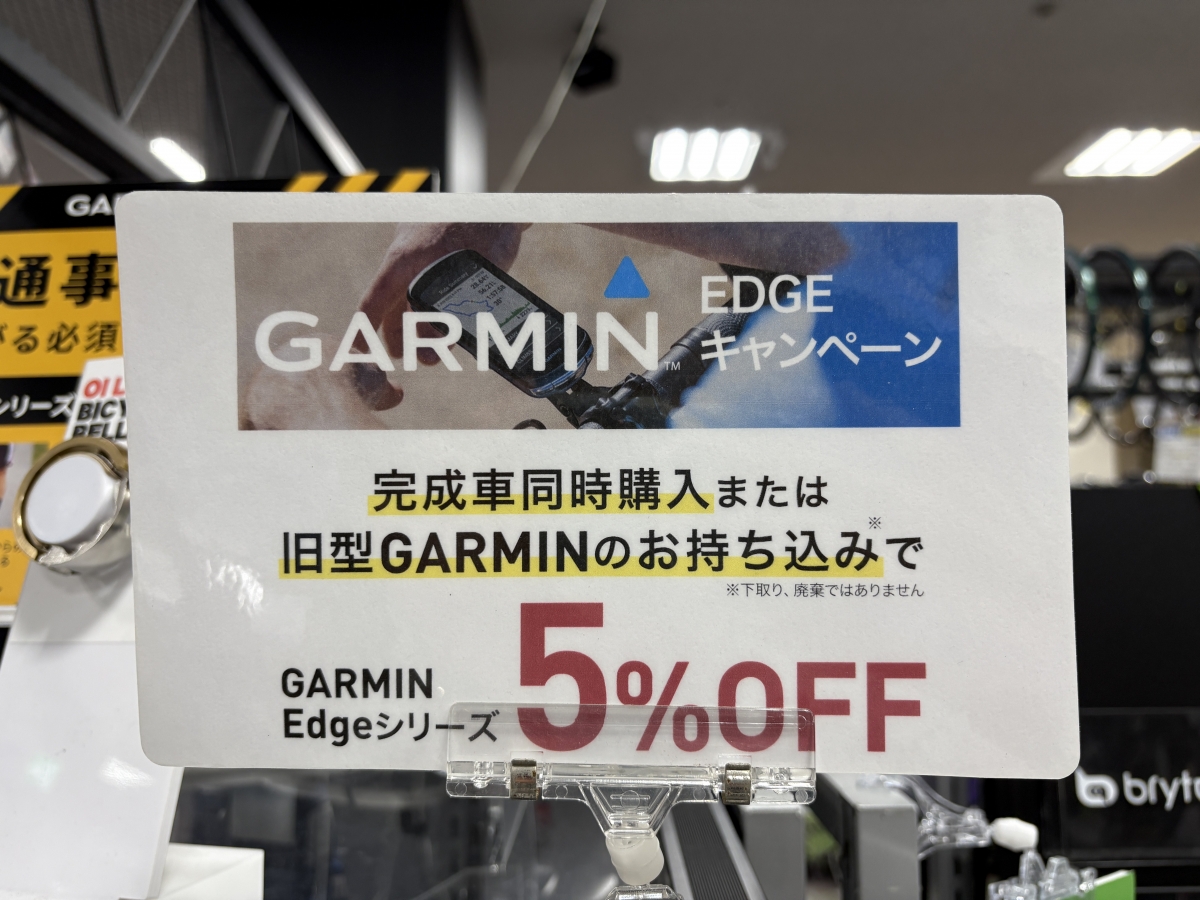 完成車とGARMIN EDGEシリーズを同時購入、または、旧型のEDGEシリーズお持ち込みで5%OFFでご案内できます!