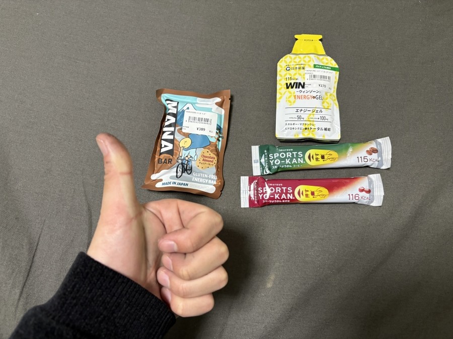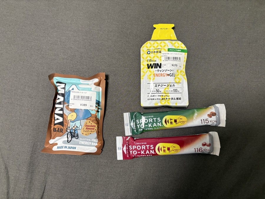 実はこのビワイチは二日前に急に行こうと思い決定したものなので正直十分な準備の量とは言えません。前回のロングライドのアワイチで使った補給食の中でも特に使い勝手の良かった個人的精鋭をまとめて持っていきました。