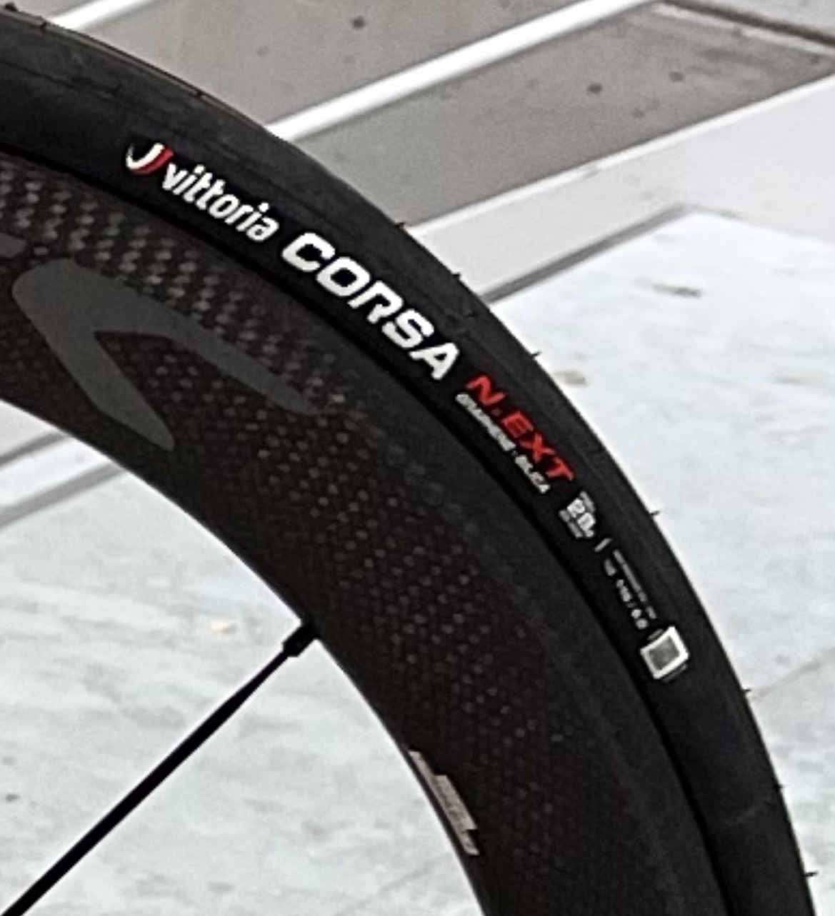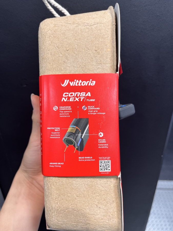 また、面白いことにCORSA N.EXTにはタイヤの側面にQR コードがあり、タイヤに関するサイトに飛ぶことが出来ます。このQRコードの仕様はVittoriaでの初の取り組みだそうです。(写真では少々見づらいですが気になる方は購入した際に確認してみてください!)