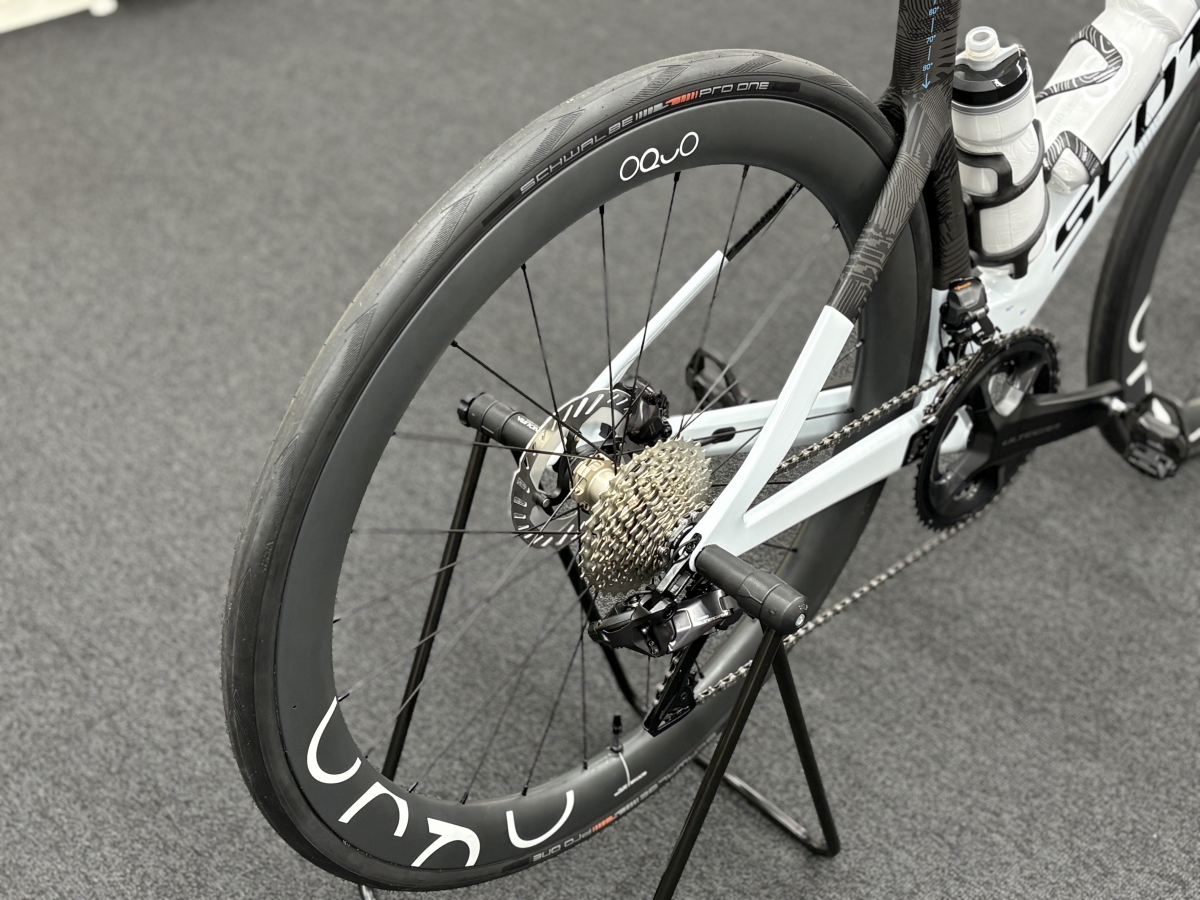 SCOTTですからもちろんSCHWALBE。その中から総合点が非常に高いPRO ONEが今回エントリー。速さ、グリップ、対パンク性のどれをとっても超一級品です。