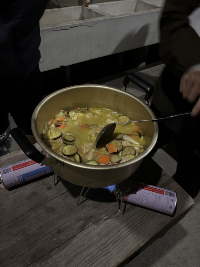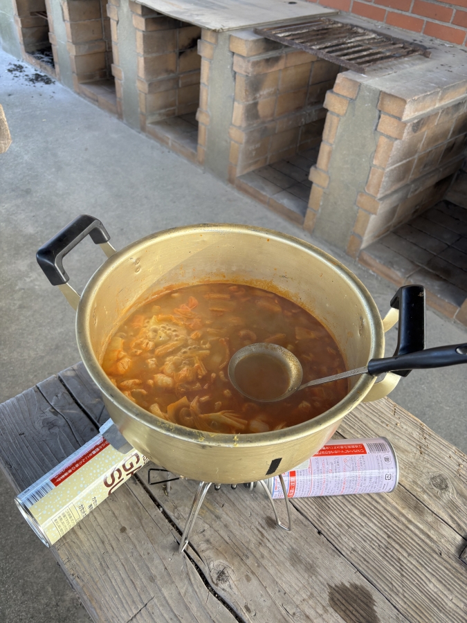キャンプでこんなものが食べられるとは。グループキャンプの特権ですね。