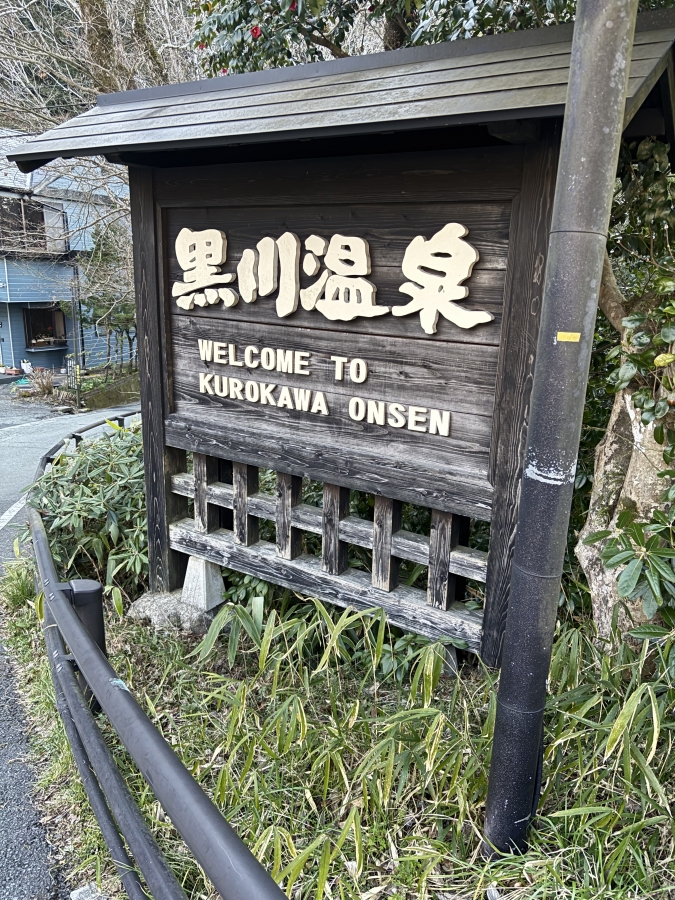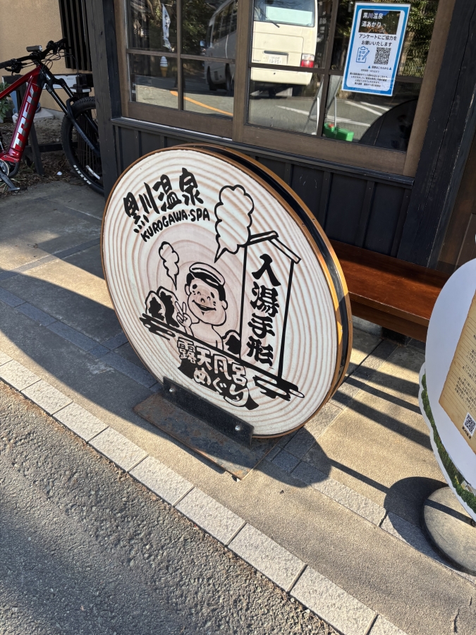 明るいうちに設営したら、今日も温泉へ向かいます。今日は近くに温泉地があったのでそこへ向かいます。「黒川温泉」というところです。