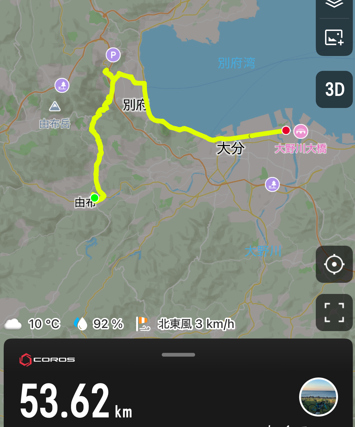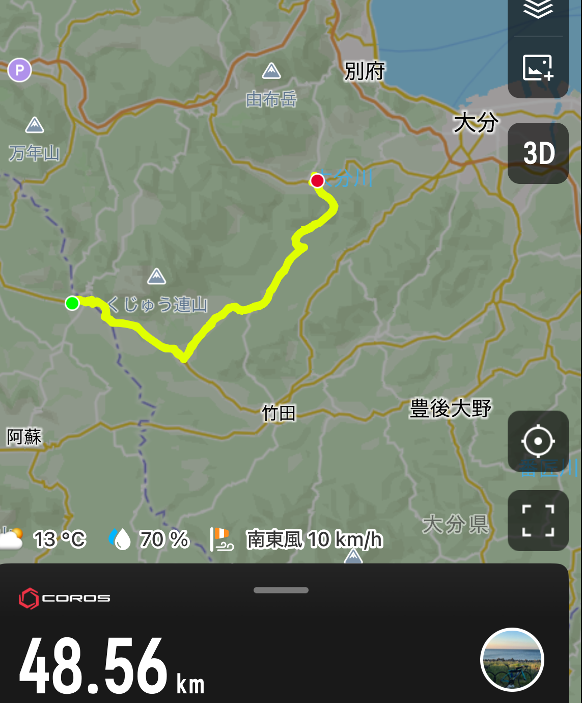 ここから別府に向かいます。由布岳のそばを通るので、一山超えまして・・・