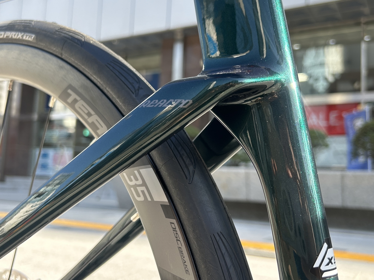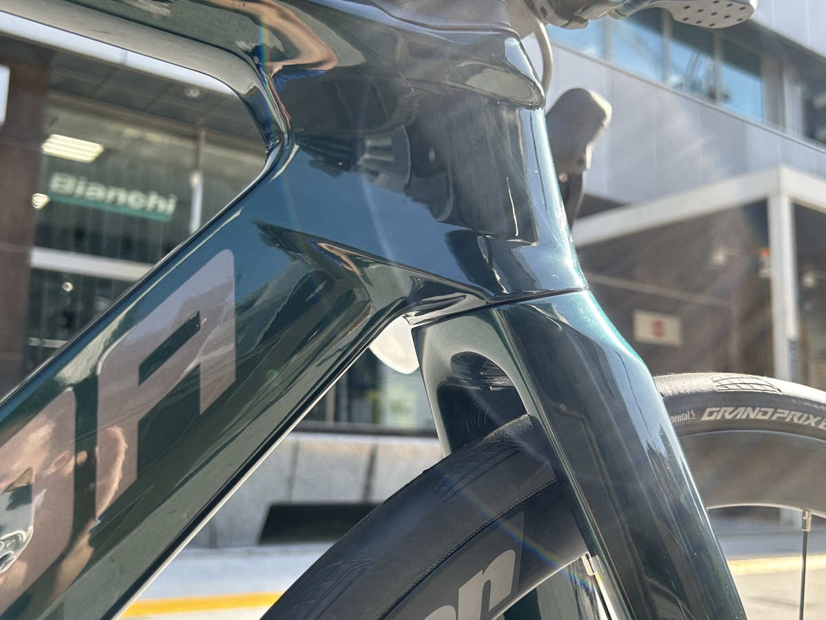 まず最大の進化ポイントはエアロ性能です。フレーム全体の形状が見直され、特にヘッドチューブやフォーク、ダウンチューブの設計が大きく変更されています。