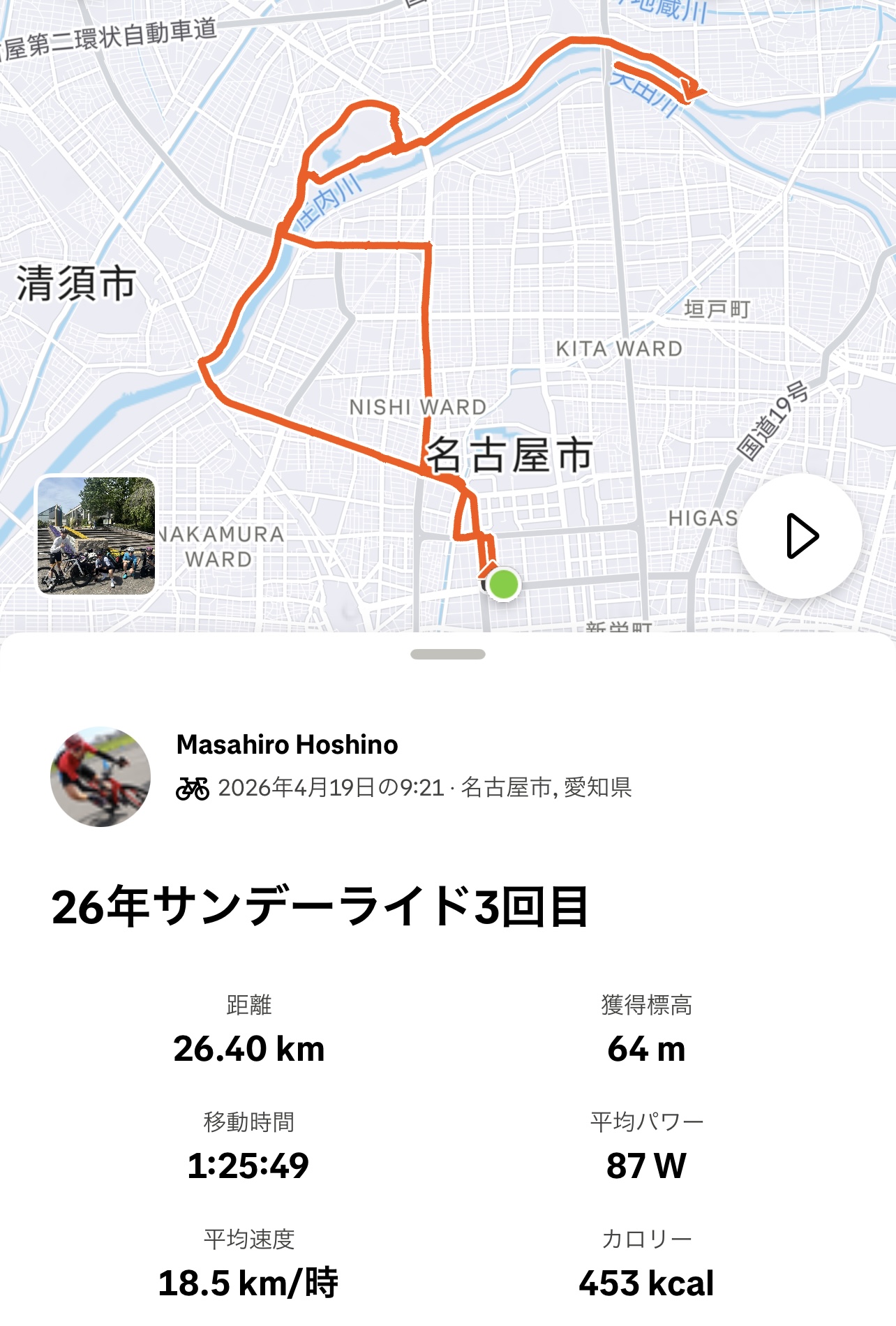 次回のサンデーライドは、5月17日㈰を予定しております!