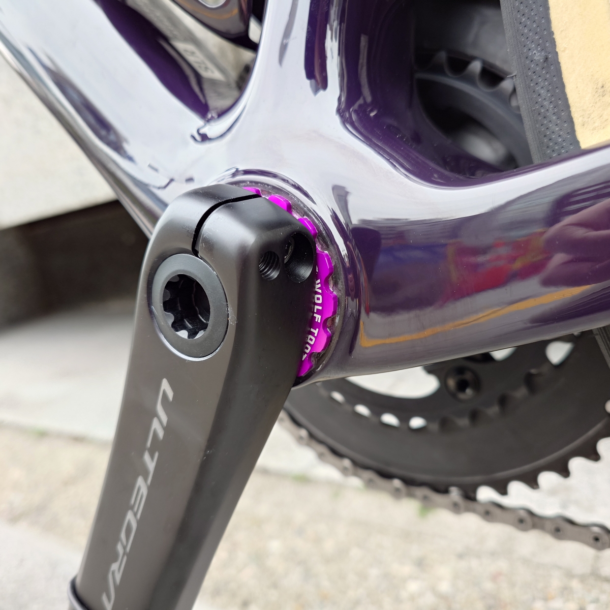 セラミックBBに変更しました。プロジェクトワンですから、もちろん最初からセラミックスピード社のBBを選ぶこともできます。回転性能もおそらくですが、セラミックスピード社やONIベアリングのほうがよいのでしょう。しかし、この発色には敵いません。