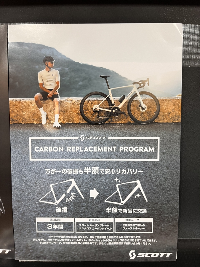 こちらのプログラムの保証は三年間の保証で、カーボンフレーム,シンクロスカーボンホイールをご購入された方に適応されます。