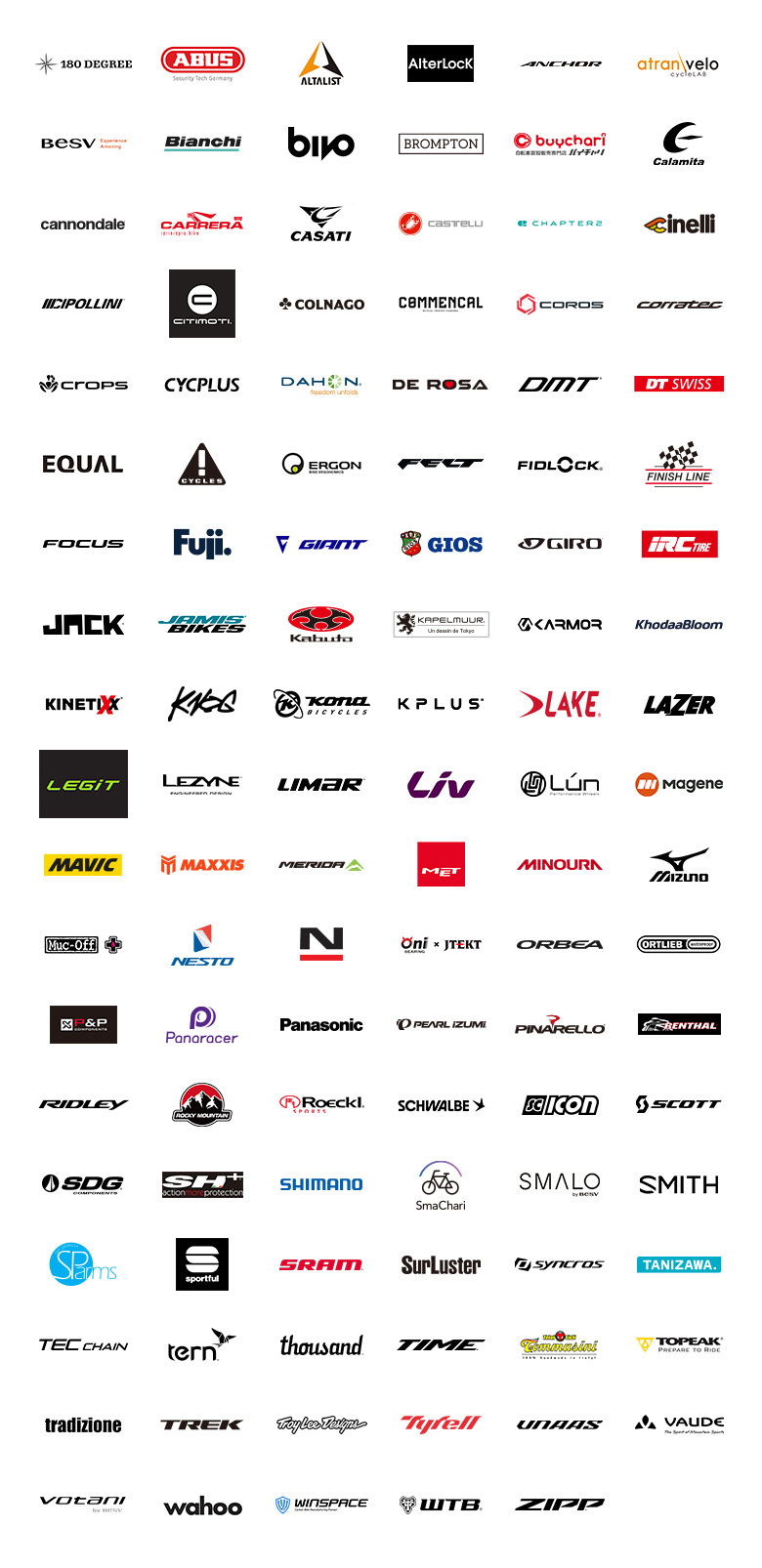 株式会社アキボウ, 株式会社 ACTIONSPORTS, 井上ゴム工業株式会社, 株式会社インターテック, WINSPACE JAPAN株式会社, 株式会社ウエイブワン, (株)エイアンドエフ, 株式会社エス・エム・ジェイ, NCD株式会社, MVCJapan株式会社, 株式会社オージーケーカブト, オルベアジャパン合同会社, 株式会社カワシマサイクルサプライ, 株式会社キルシュベルク, 株式会社グロータック, グローブライド株式会社, 株式会社クロップス, サイクルヨーロッパジャパン株式会社, 株式会社ジェイテクト, JAMIS JAPAN, 株式会社ジオライドジャパン, シマノセールス株式会社, 株式会社ジャイアント, シュアラスター株式会社, 株式会社ジョブインターナショナル, 株式会社スコットジャパン, ダイアテック株式会社, 株式会社 Champion System Japan, 株式会社ツインズ, DT Swiss, トレック・ジャパン株式会社, 日直商会, 株式会社ネクストスケープ, 株式会社パールイズミ, バイチャリ株式会社, パナソニック サイクルテック株式会社, パナレーサー, 株式会社ピーアールインターナショナル, 株式会社フォレストアドベンチャー, 株式会社フカヤ, ブリヂストンサイクル株式会社, ブロンプトンジャパン株式会社, 株式会社BESV JAPAN, ホダカ株式会社, 株式会社ポディウム, 本田技研工業株式会社, マヴィックジャパン株式会社, 株式会社マルイ, ミズタニ自転車株式会社, 株式会社 Many'S, メリダジャパン株式会社, ライトウェイプロダクツジャパン株式会社,