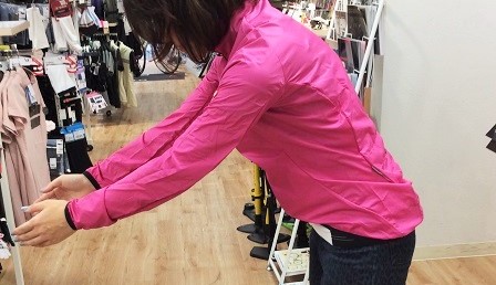 試着の際はしっかりとライディングポジションをとってサイズ感をチェック!