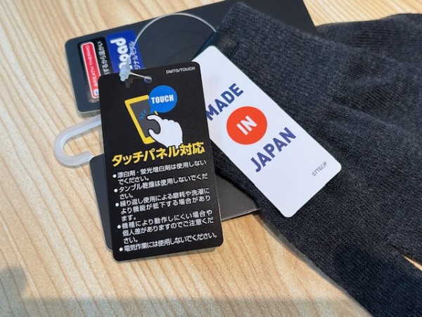 また、親指、人差し指にはタッチパネル対応の素材を使用し、手袋を着けたままスマートフォンの操作が可能です。