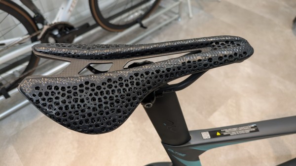 3Dプリントによる中空構造が快適性と軽量性を両立。軽いサドルはバイクを振ってダンシングする際の振りの軽さに直結します。
