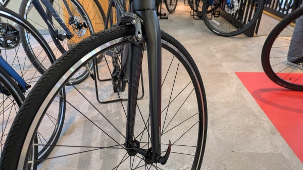 フレームはアルミ製ですが、フロントフォークをカーボン製にすることで振動吸収性と軽量性を確保。