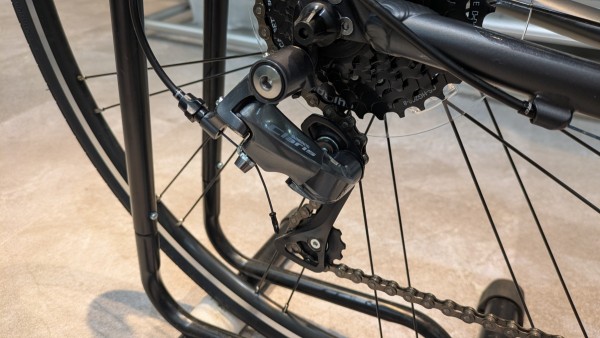 フロント2段、リア8段の多段変速でロードバイクとして必要なギア比を確保。またブレーキキャリパーもSHIMANO製なので信頼性が高いです。