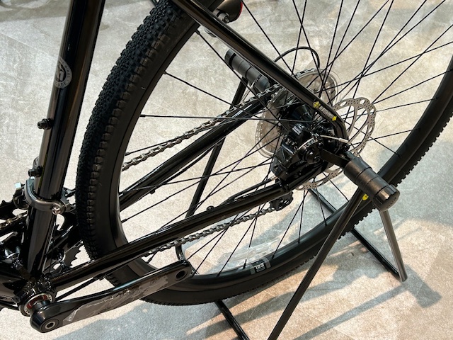 700×37cの太いタイヤで、未舗装路や砂利道での走破性を高め、クッション性も高いので舗装路でのロングライドにも最適です。