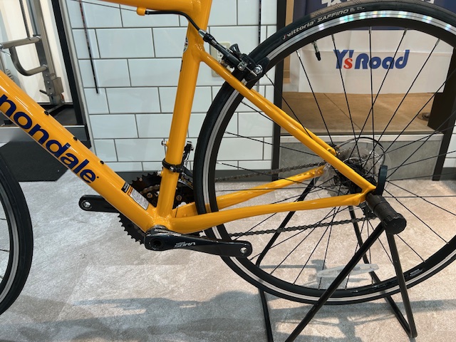 本日ご紹介するのは、決算セール対象車体の中でもかなりお買い得なこの1台、『CANNONDALE OPTIMO 3』、マンゴーカラーが目を引く1台です。