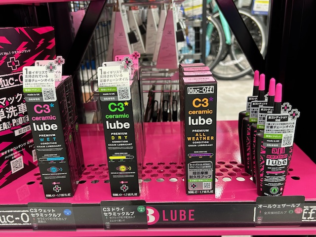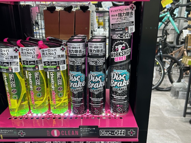 スポーツバイクを始めたら乗るだけでなくお手入れにも力が入ってくるかと思います。自転車のお手入れに必要なケミカル類のブランド、MUC-OFFの取り扱いが大井町店でも始まりました。