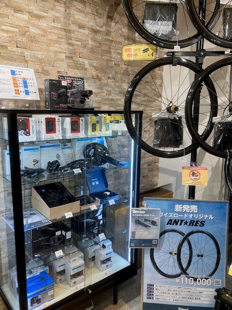 当社オリジナルブランドANTARESのカーボンクランク、カーボンホイールもご覧いただけます。