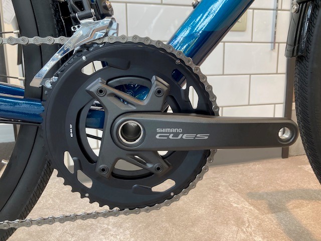 今回入荷してきたのはRE6の中でのミドルグレードCUES搭載モデル。シマノによると、チェーンやスプロケットなど摩耗するパーツの耐久性を従来製品より3倍向上させたCUES。まさに通勤や通学、ロングツーリングなど日々ライドを行うヘビーユーザーにはぴったりの一台です。しかも、今回は写真の通り前後フルフェンダー、今ならリヤキャリア付き!!