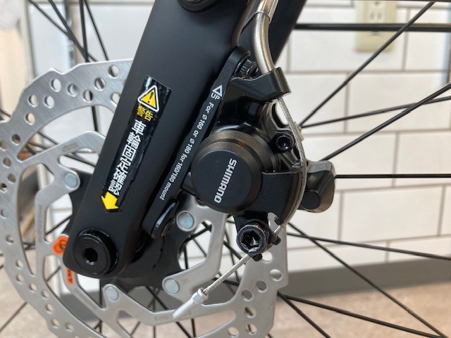 シマノ機械式ディスクブレーキ搭載!今は定番となったディスクブレーキですが、油圧式でなく機械式をのせてます。レバーの引きの軽さでは油圧式に少し劣るかもしれませんが、旅先などでトラブルがあっても対処しやすいのも事実。ツーリング、輪行などではあえて機械式を選択される方も多いです。
