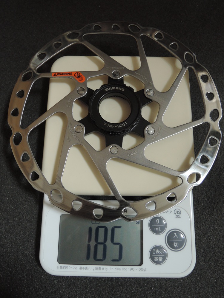 取り外したところで重量測定。180mmが185g、160mmが161g。