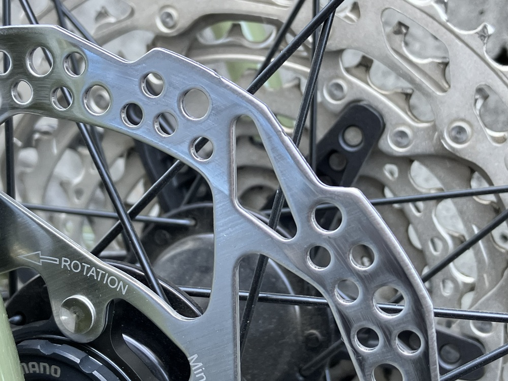 10kmほど走った後のローター。前後とも制動面に沿ってきれいに当たりが出ているのが分かります。