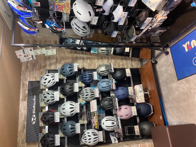 命を守る為の必需品へルメット。自転車をご購入いただいた際にお選びいただけるのはもちろんですがヘルメットの着用が義務化されている中、近隣の方にも多くご来店、ご購入いただいております。ヘルメットのみご購入のみのお客様もお待ちいたしております!スポーティーなものからよりカジュアルなものまで揃えていますのでお気軽にご相談ください。
