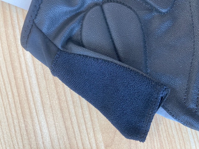 親指のマイクロフリースで、額の汗を拭うことができます。