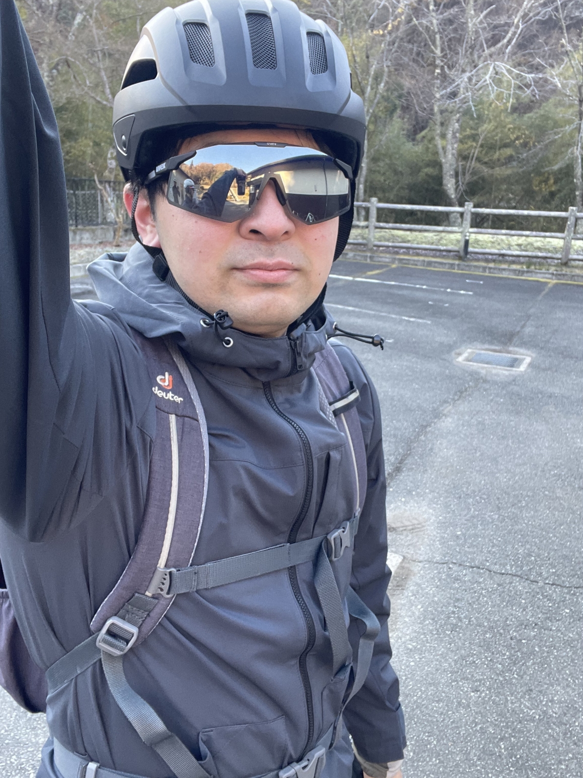 私は久しぶりのライドということもありお尻の痛みが怖かったので、慣れたビブタイツの上からrinprojectの3015ストレッチサイクルショートパンツを履いて、ジャケットはバイクマンパーカーlightを羽織っていきました。