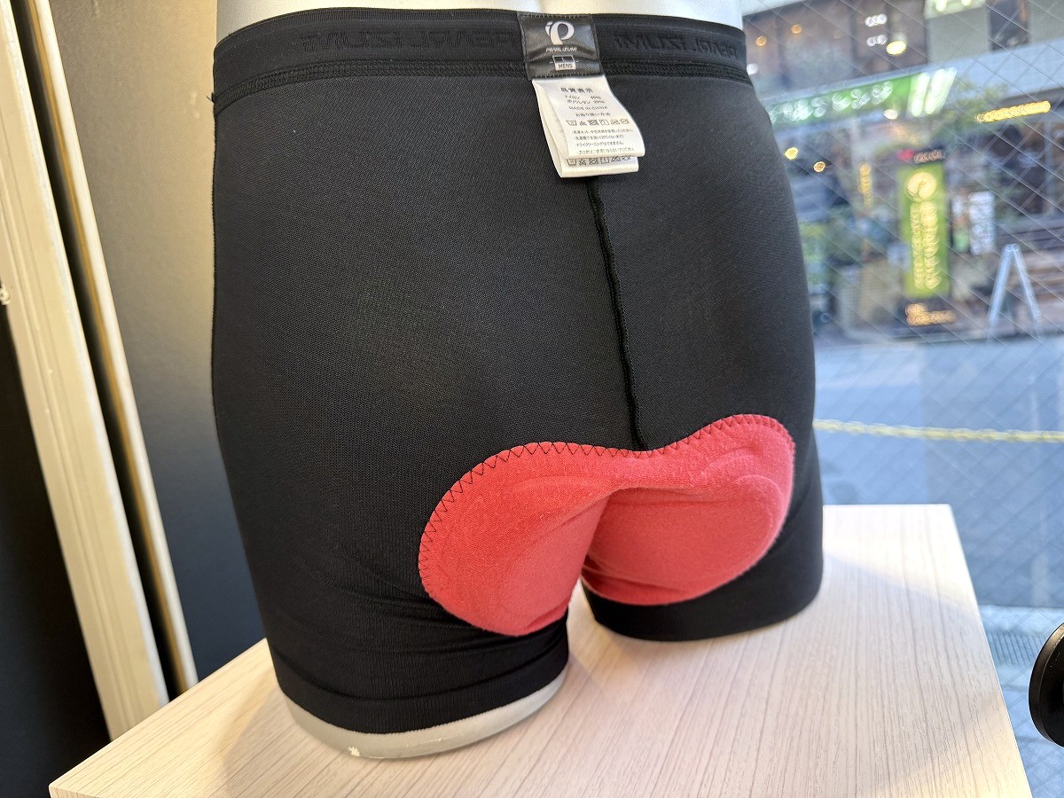 スポーツ自転車のサドルは細くて硬く、路面から受ける振動はダイレクトに身体に届きます。慣れた人でも走行を続けているとおしりが痛くなる場合があります。(稀にすごくおしり強度が高い人が居ますが、ほんとに稀です)途中で痛くなってしまったら、もうサドルに座れません。ずっと立ち漕ぎするか、ずっと押して歩くか、誰かに車で回収してもらうか…なんてことになったらしんどいですよね。そんなおしりの痛みを和らげ、守ってくれるのがパッドの付いたパンツ。こちらも自転車をGETしたら最初にお求めいただくのをおすすめしています。