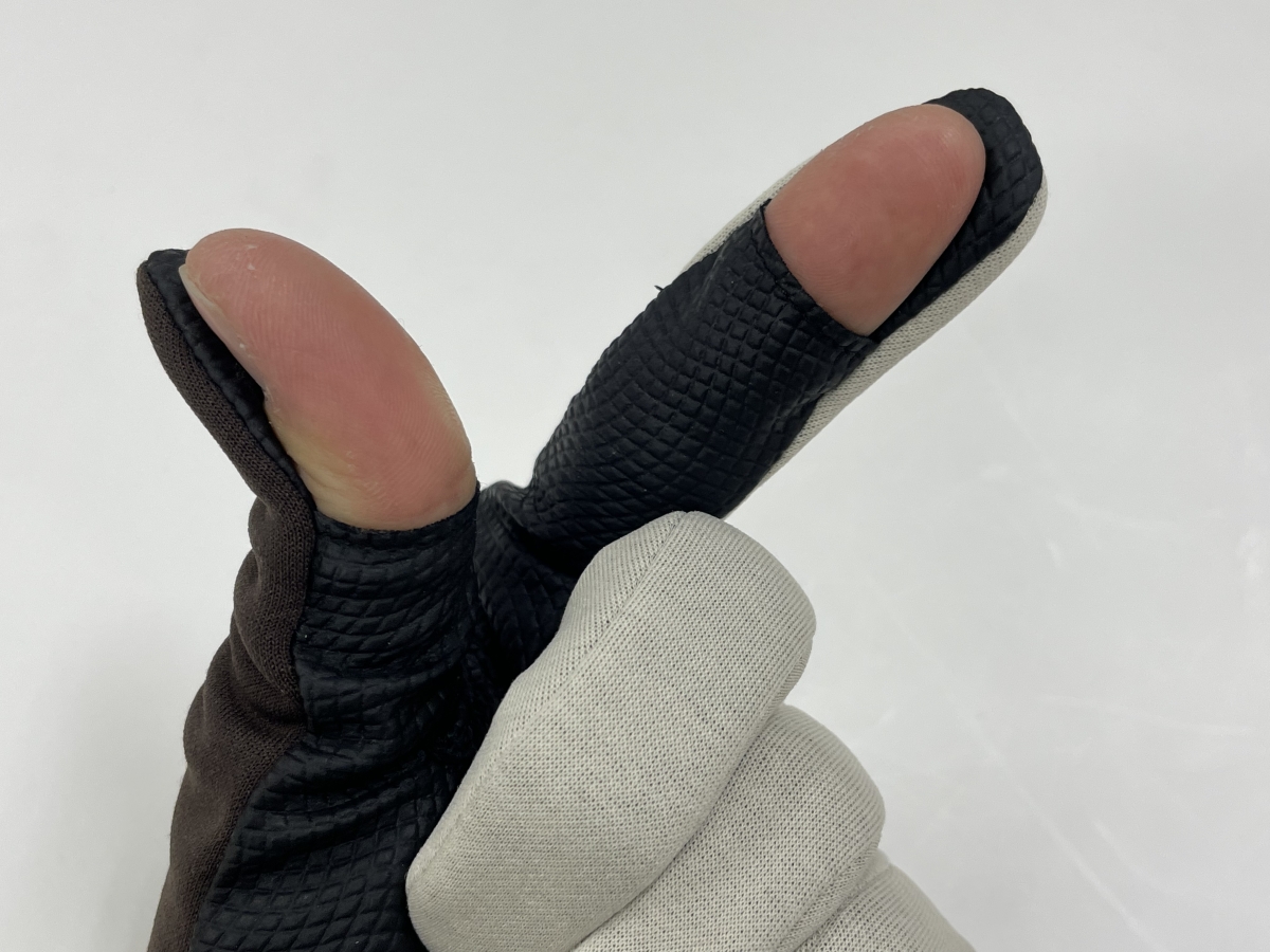 このように親指と人差し指の先だけ出すことができるので、スマホなどのタッチパネルの反応は抜群です。