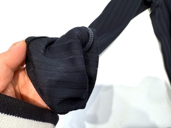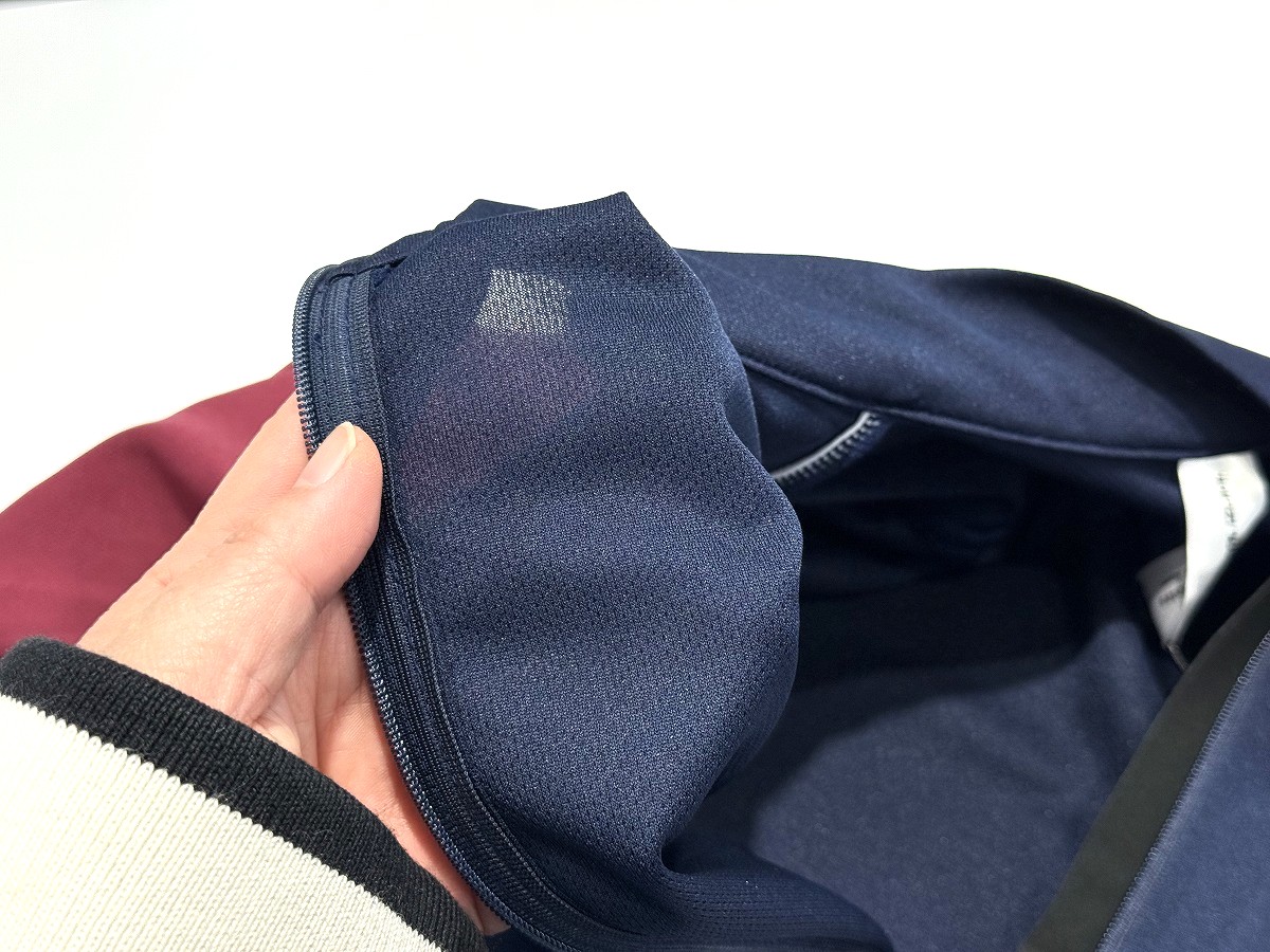 秋冬用ウェアは外気温15℃対応の薄手のものも含めほとんどのアイテムがこのように生地の密度が高く裏起毛になっています。寒がりさんにはマストですが、暑がりさんはお話を伺っているとやはり3月~4月に裏起毛は暑いと感じる様子。