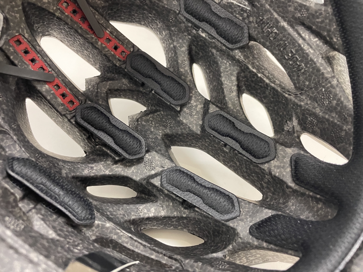 わかりやすいほど通気口の数が多く、ヘルメット内側も溝がついており頭とヘルメットの間をしっかり空気が流れていきます。