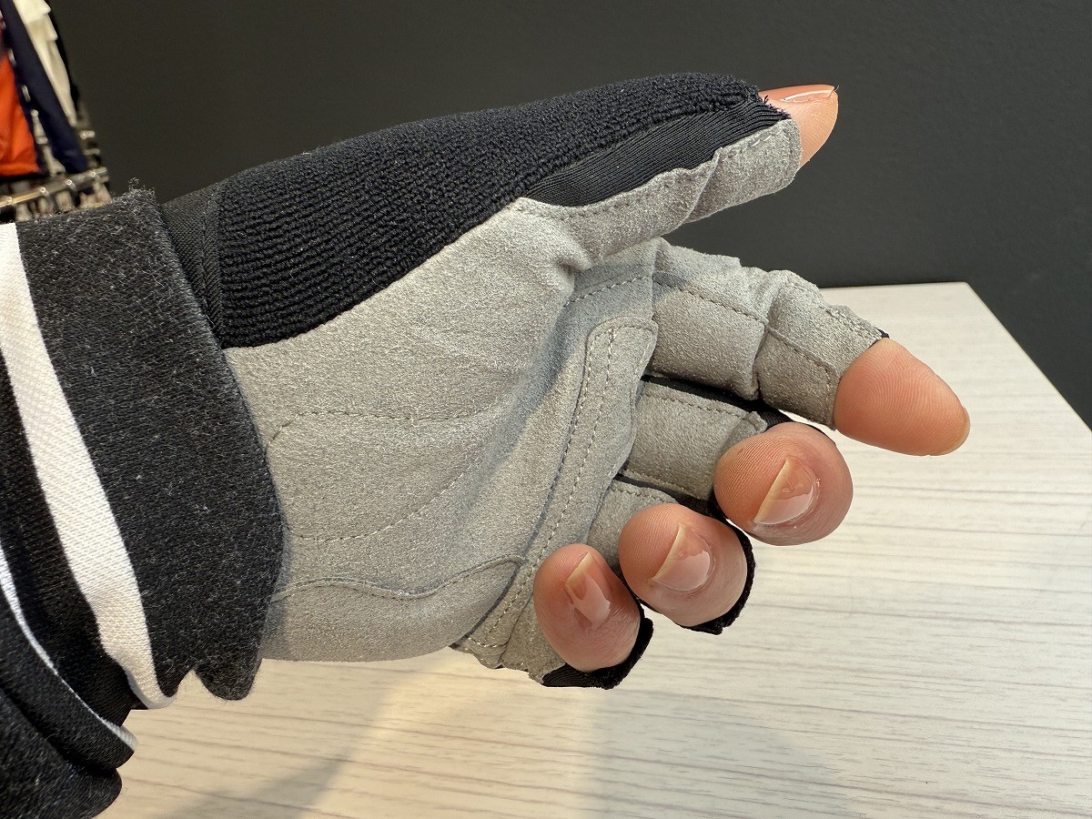 指先が出ていることで蒸れにくく、スマホ操作やギアチェンジ操作も快適に行えます!