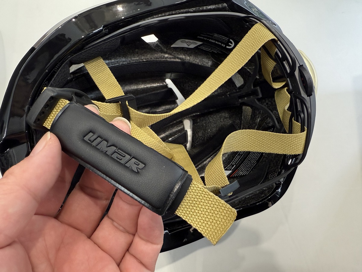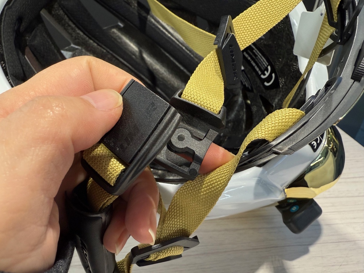 ストラップもイエローゴールド。革のあごひもカバーと合わせて細部まで高級感が漂います。