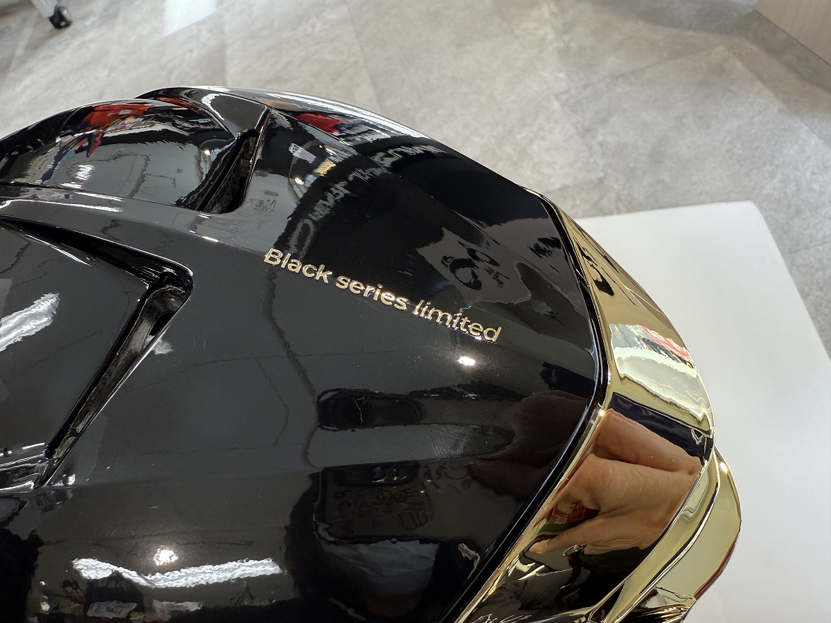 後部はゴールドがひときわ映えるデザイン。このゴールドの後部パーツは脱着可能になっており、装着すればより高いエアロ効果を、取り外せば軽量化と通気性の向上を得られる設計になっています。