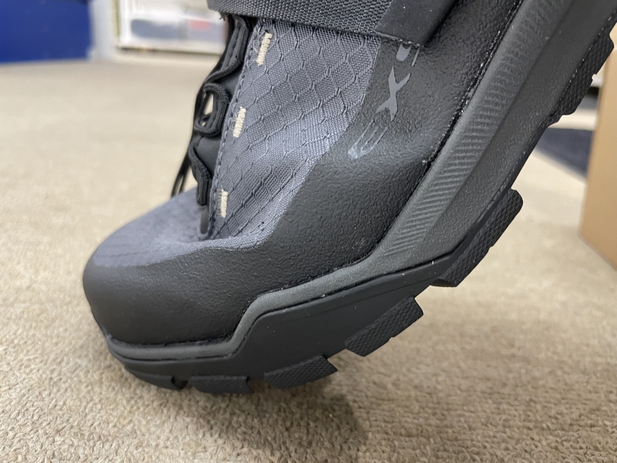 つま先がある程度しなってくれるので歩きやすいだけでなく、ペダルを踏む方向には曲がりにくいので、ペダルに力をしっかり伝えてくれるので非常に楽にライドを楽しんでいただけます。