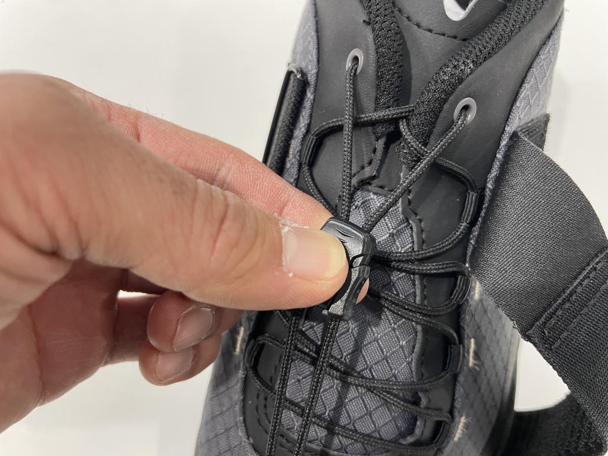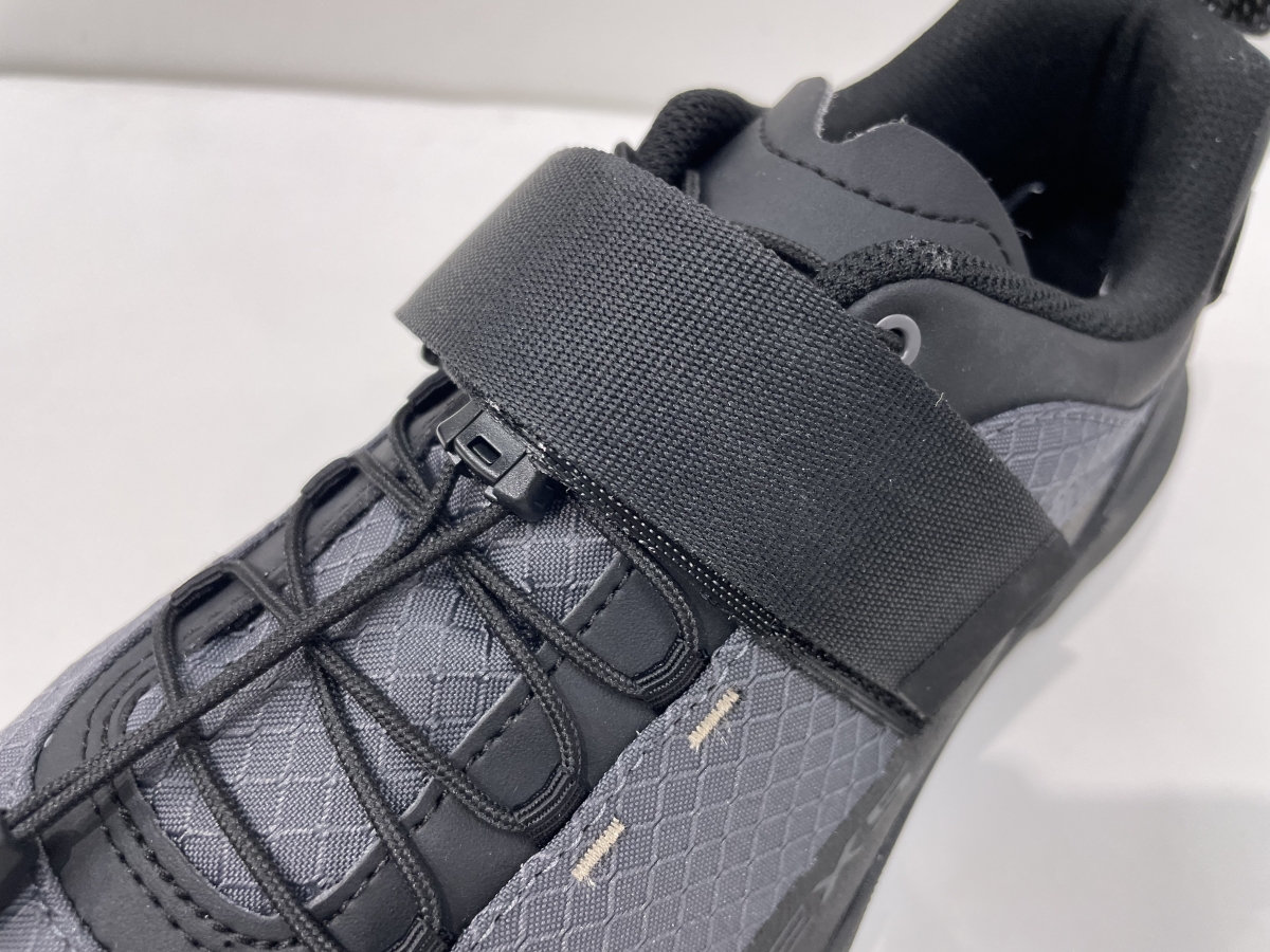 紐だけではしっかり締めることが難しいので、甲の足首よりには大きなベルクロがついており、ここをしっかり締めこむことでよりフィット感が向上します。