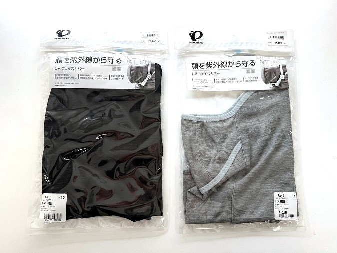 調整用のスナップボタンや開閉する口元の仕様がない、頭からかぶるタイプの簡易型フェイスカバーもございます。利便性は圧倒的にFA-3が上ですが、UVカット性能やゴムの耳掛けなど必要なポイントはしっかりおさえてお値段控えめなので、お好みで選んでくださいね。