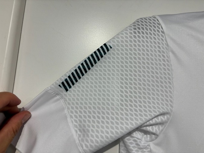 袖から脇にかけて立体メッシュを採用し通気性◎