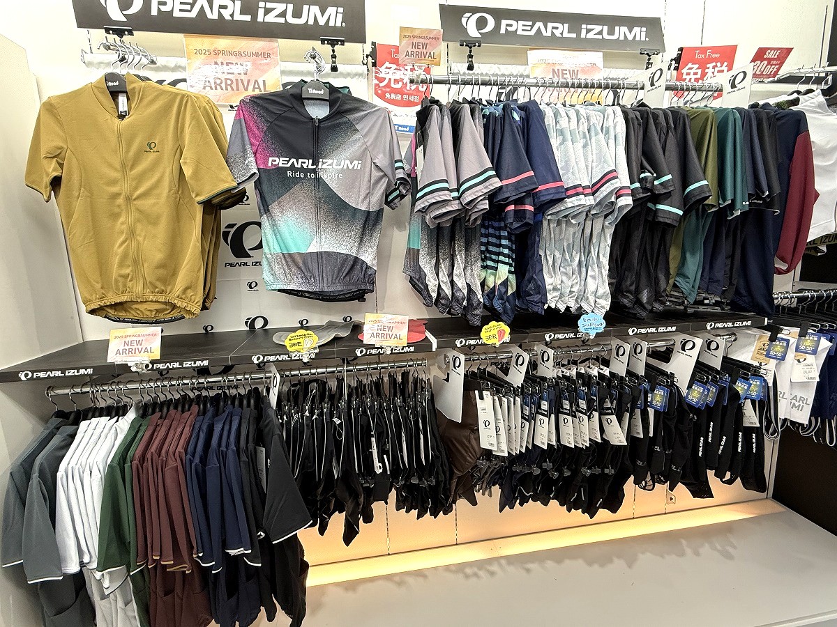 現時点ではまだ未入荷のアイテムもありますが、春夏ウェアだいぶ増えてきました!!新商品続々入荷で春夏ウェアコーナー拡大中♪パールイズミは特に夏物パンツのバリエーションが非常に豊富。パッドや丈の長さなども様々なので、自分のスタイルに合ったジャージとパンツを是非合わせてみてくださいね!