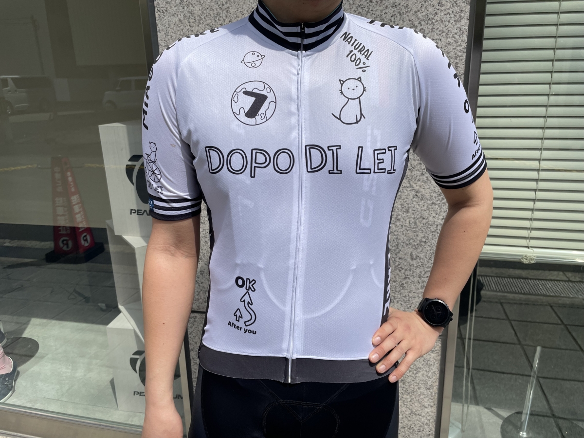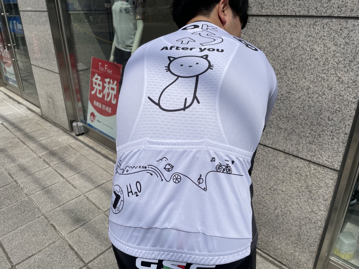 背中にデザインされているので、後ろから追い越す人からも見えるのかな?どうなのかな?