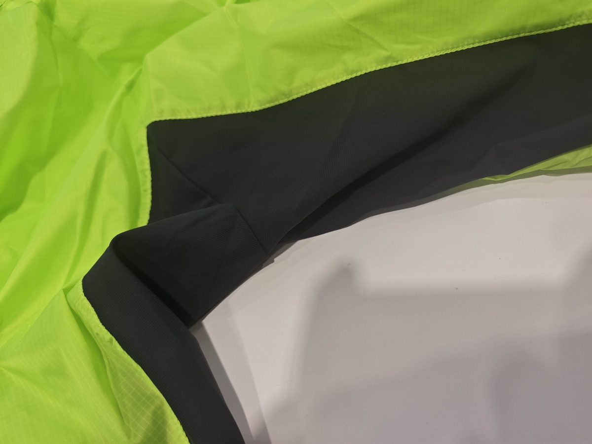 前面からの風をナイロンでしっかり防ぎつつサイドには動きやすくする為にストレッチ素材を使用しています。