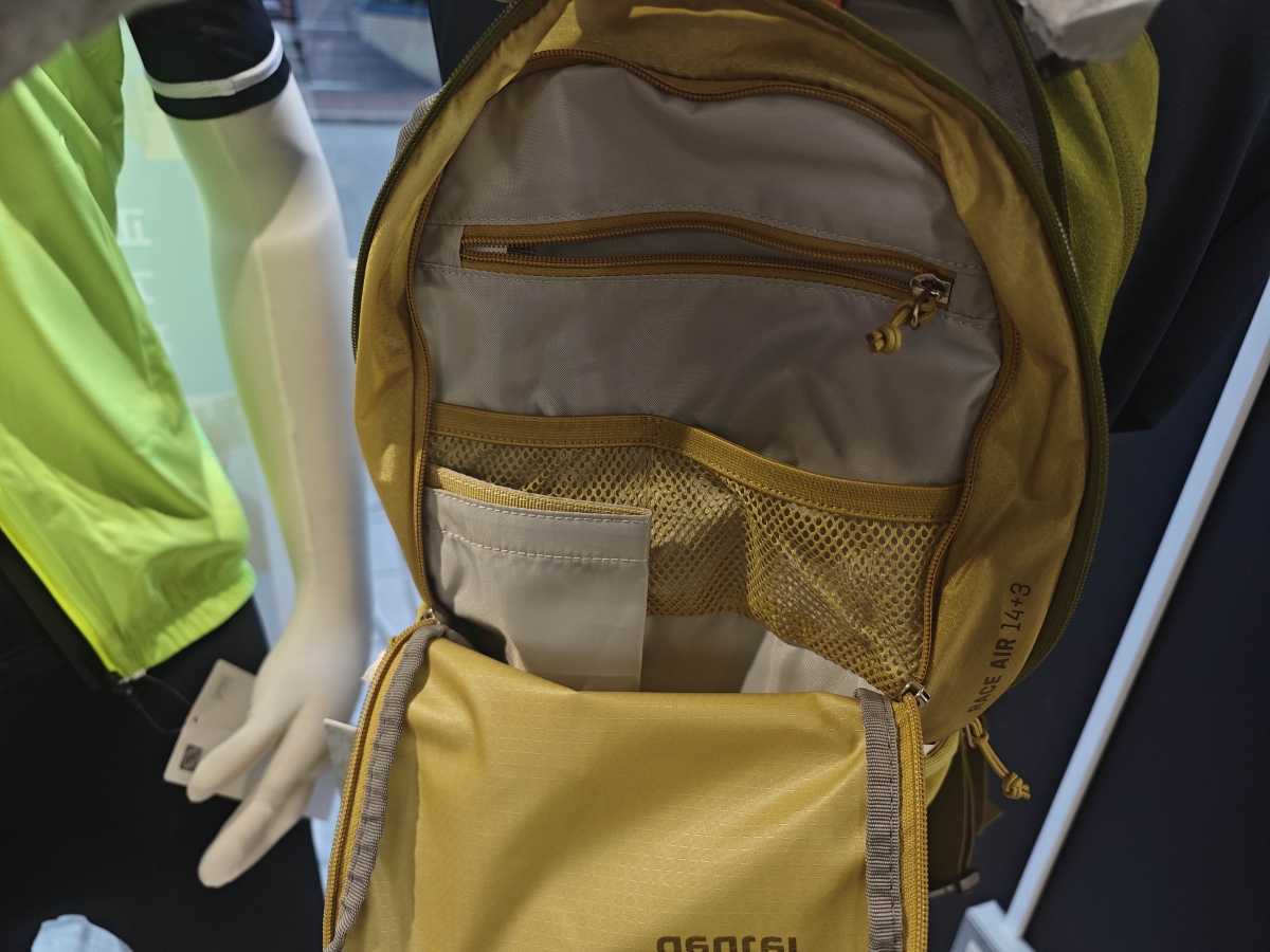 中には14Lの荷物が入り、一番背中側のチャックを開けることにより3L拡張され最大17Lになります。