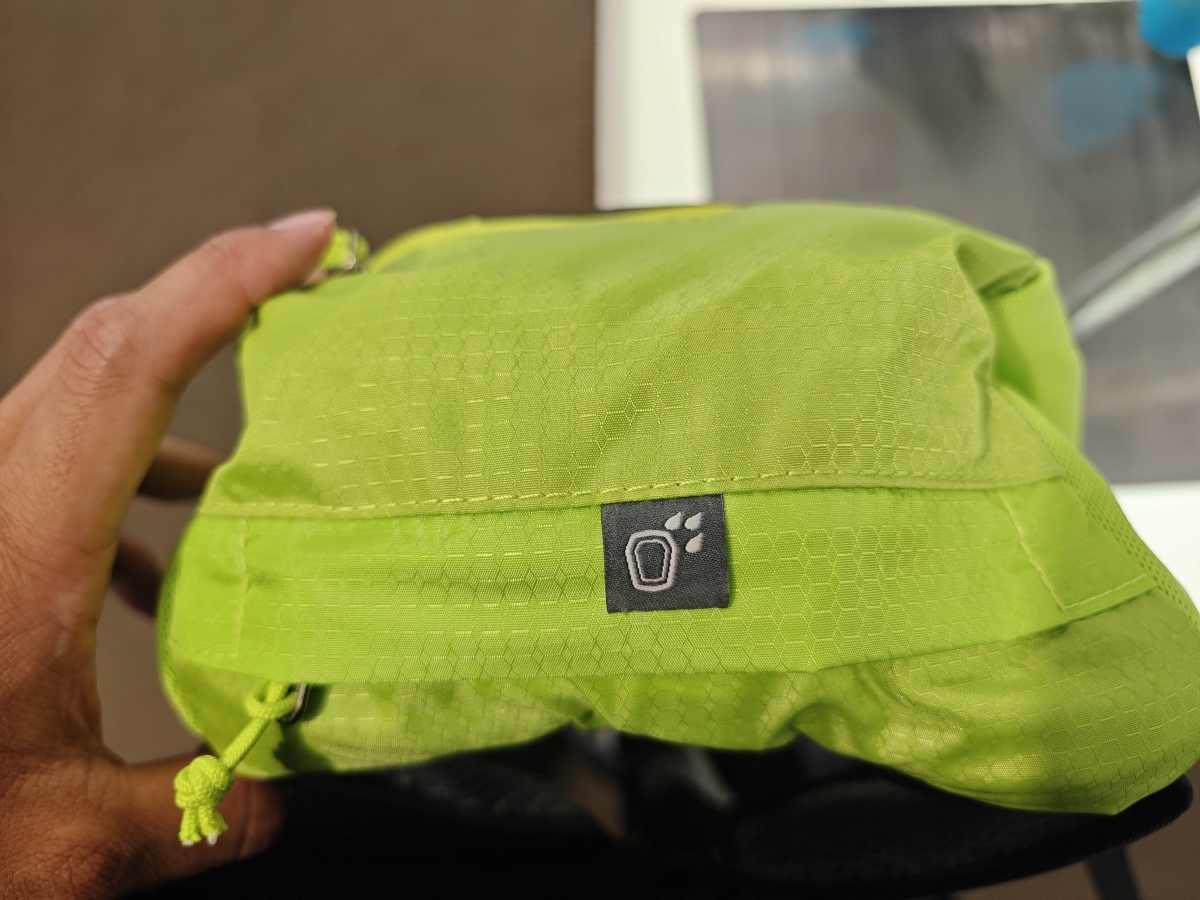 リュックの底あたりに雨マークのチャックがあり防水カバーがでてきてリュック全体を覆うことができます。