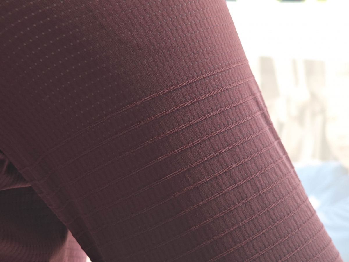 着る前に驚いたのですが生地の質感が今までに触ったジャージのどれとも違います、そして透けてはいないのに超薄く速乾性に優れていそうです。