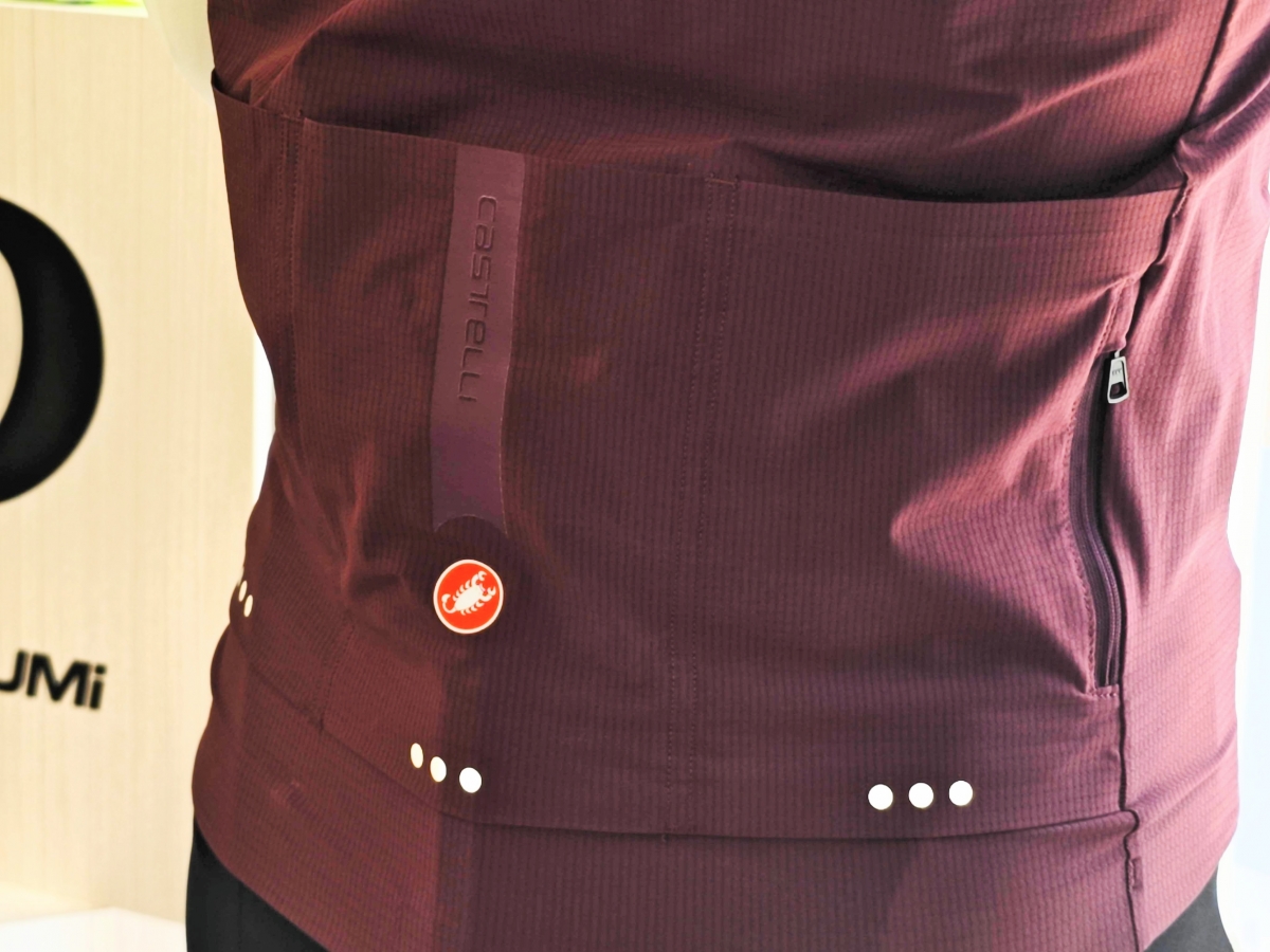 裾部分には動きに合わせた立体的なライン加工が施されフィット感とエアロダイナミクスを高めます。