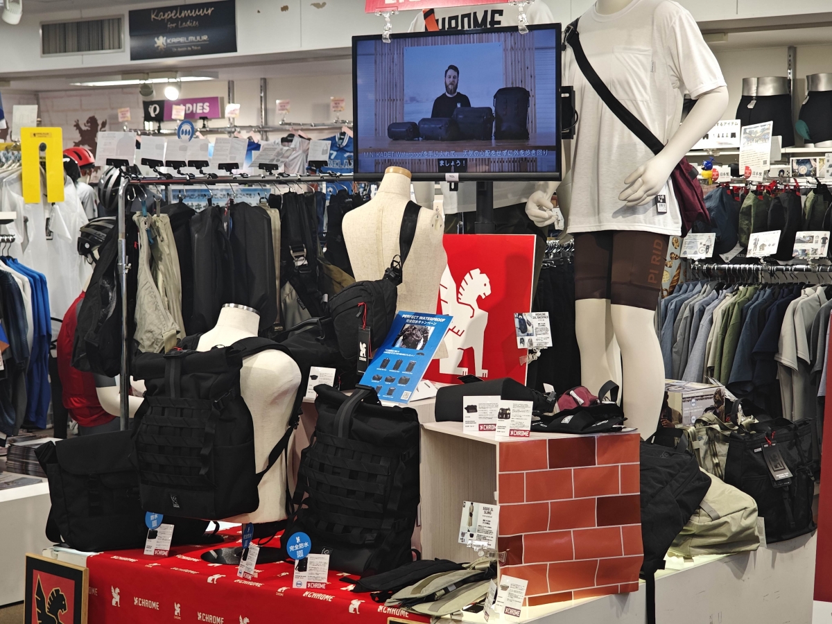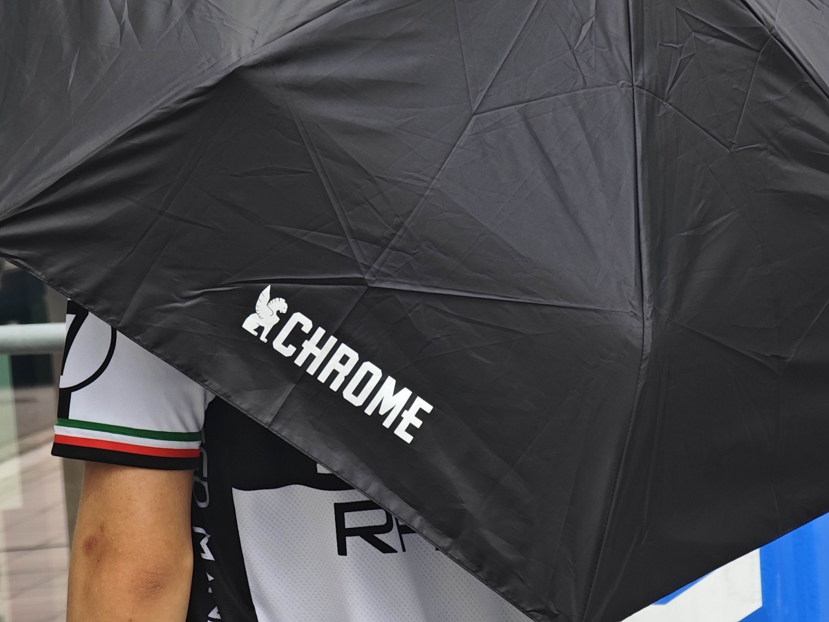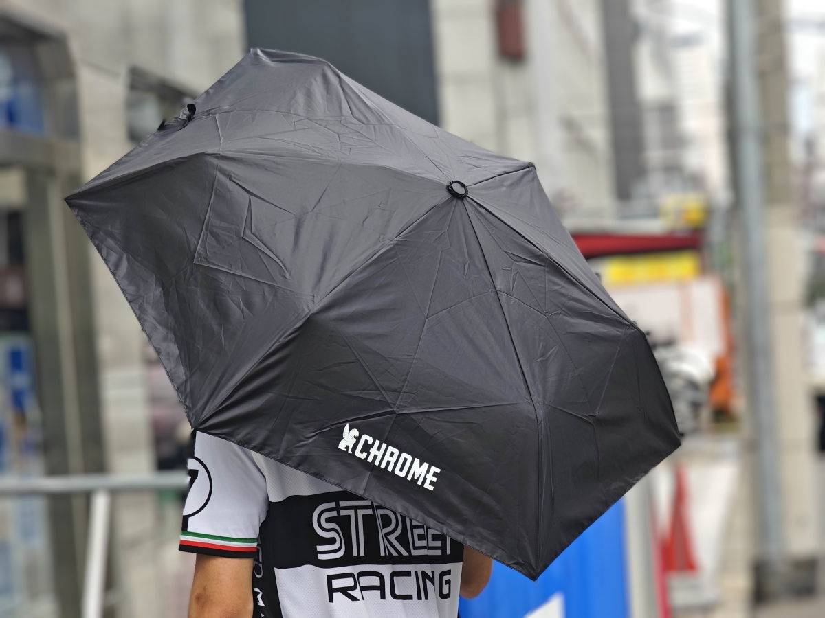 6/29までCHROMEの完全防水モデルを購入すると素敵なロゴ入り折り畳み傘が貰えます。