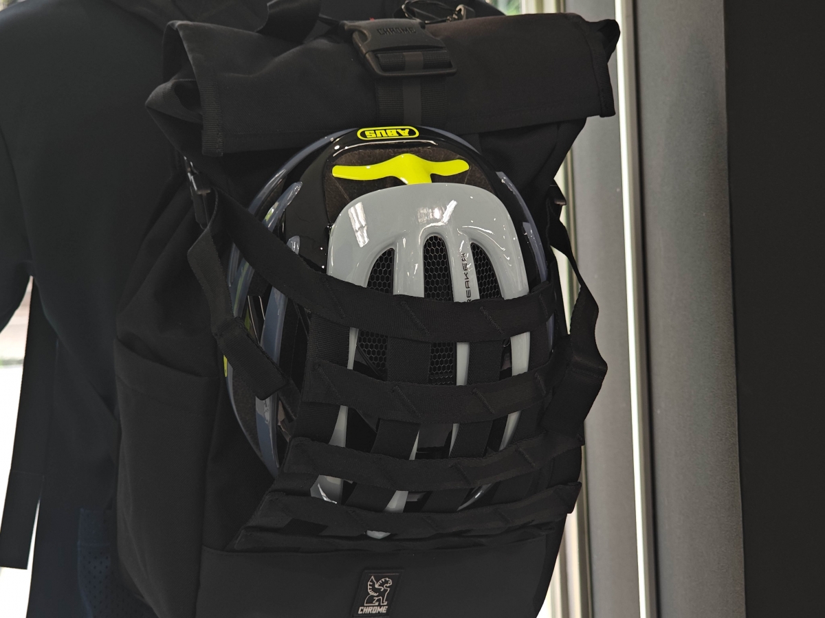 後方のカーゴネットにはヘルメットも入り、自転車通勤にはうれしい機能