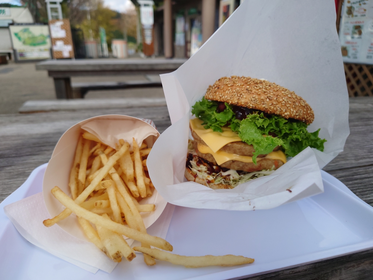 牧場がありそこで飼育した鶏を使ったハンバーガーです。