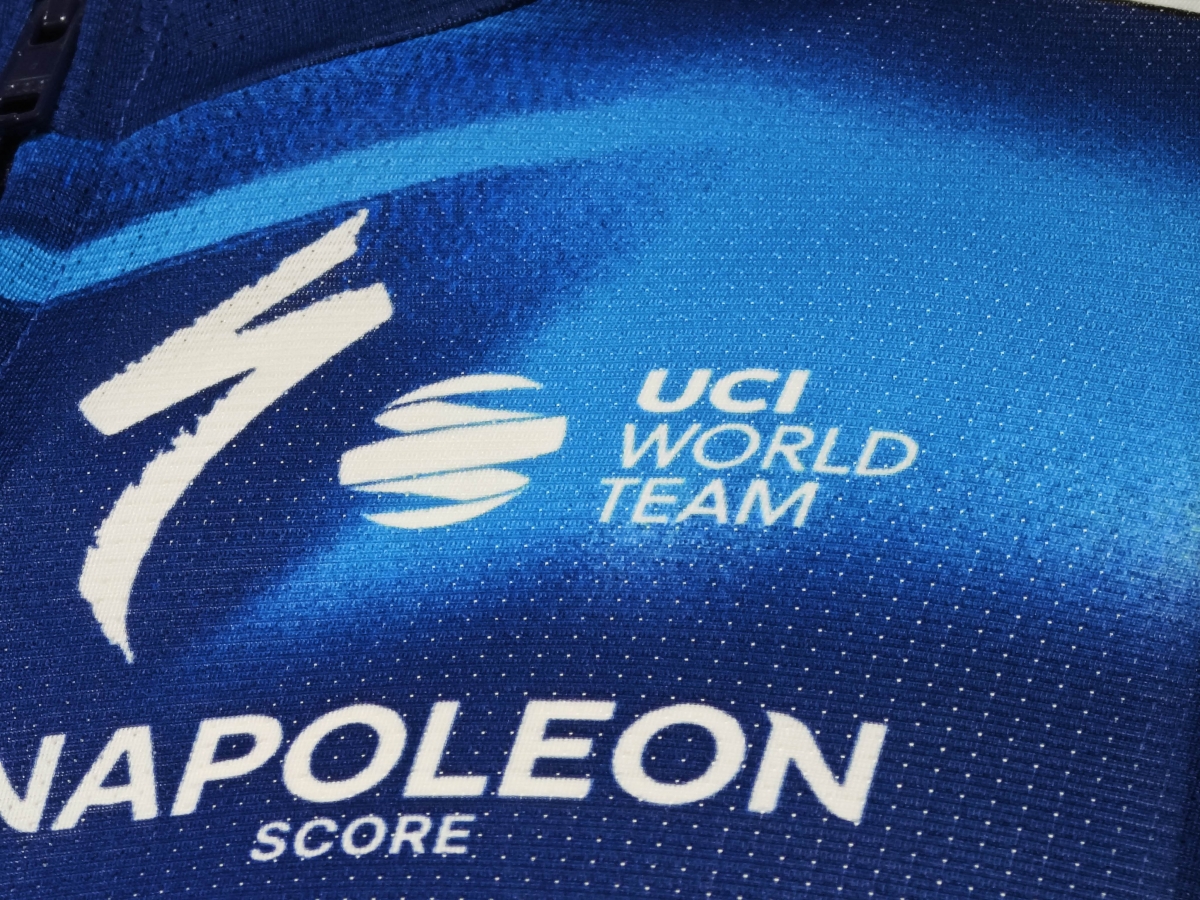 胸には世界最高峰の証UCI WORLD TEAMのロゴが入っています。
